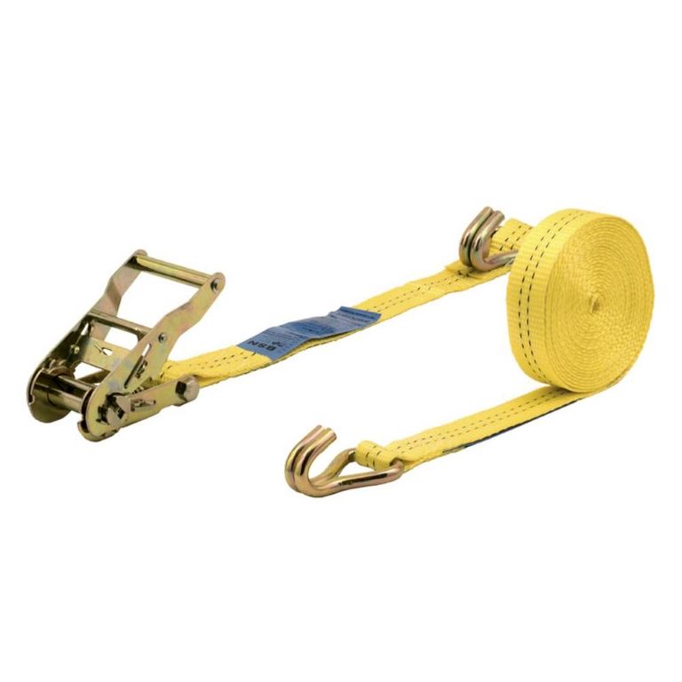 Wolfcraft 3276000 Колан за укрепване на товари с тресчотка и куки 2000 кг, 6 м, 35 мм, жълт