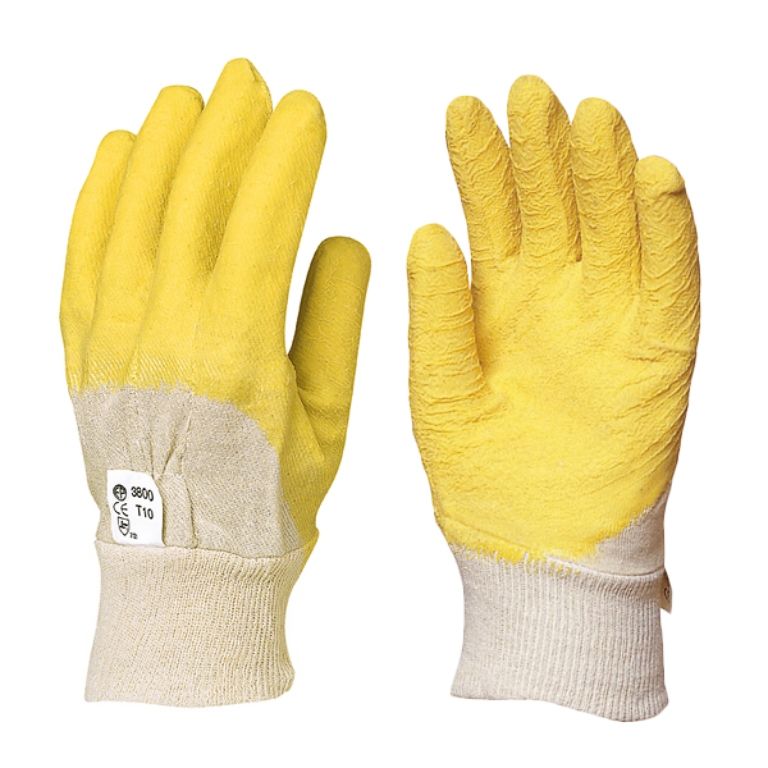 Ръкавици Eurotechnique топени в латекс памучни размер 10, жълти, 3800