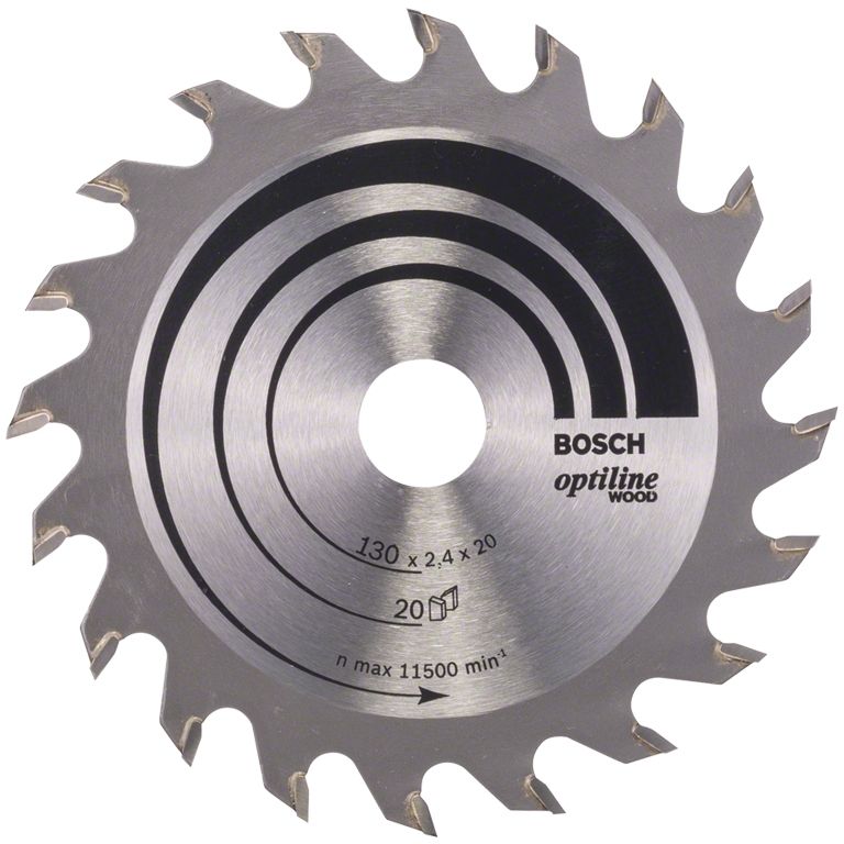 Циркулярен диск Bosch метален HM за рязане на дърво 130x20x2.4 мм, 20 z, Optiline Wood