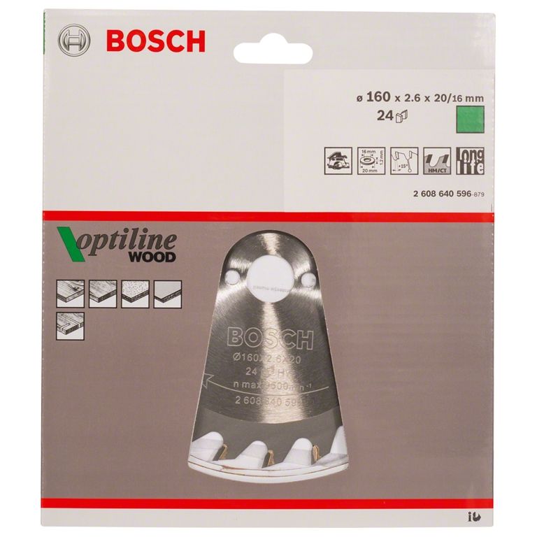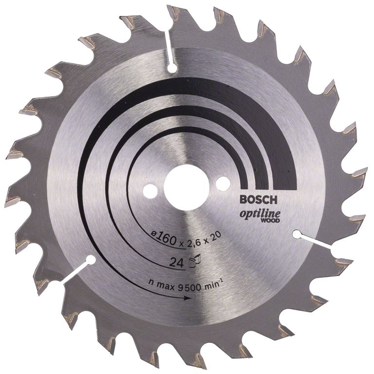Циркулярен диск Bosch метален HM за рязане на дърво 160x20x2.6 мм, 24 z, Optiline Wood