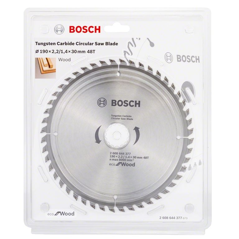 Циркулярен диск Bosch метален HM за рязане на дърво 190x30x2.2 мм, 48 z, Eco for Wood