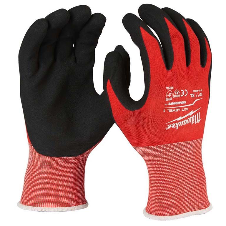 Ръкавици Milwaukee със защита от срязване ниво 1 топени в нитрил размер 9, черно и червено