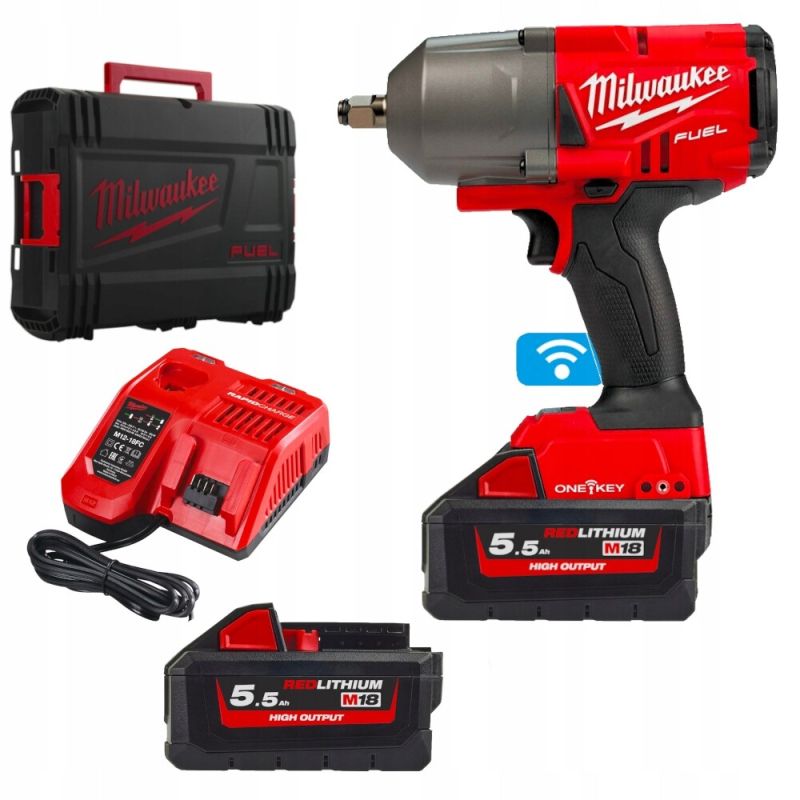 Гайковерт Milwaukee M18 ONEFHIWF12-552X акумулаторен ударен безчетков 18 V, 5.5 Ah, 1898 Nm, 1/2" + Подарък акумулаторна батерия Milwaukee M18 B5, 18 V, 5 Ah